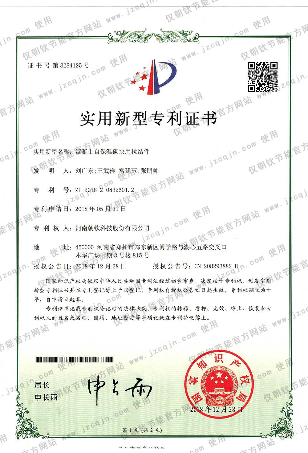朝欽節(jié)能擁有數(shù)十項(xiàng)科研成果與專利,及河南省建設(shè)廳等機(jī)構(gòu)鑒定證書,并發(fā)布了數(shù)項(xiàng)企業(yè)標(biāo)準(zhǔn)。